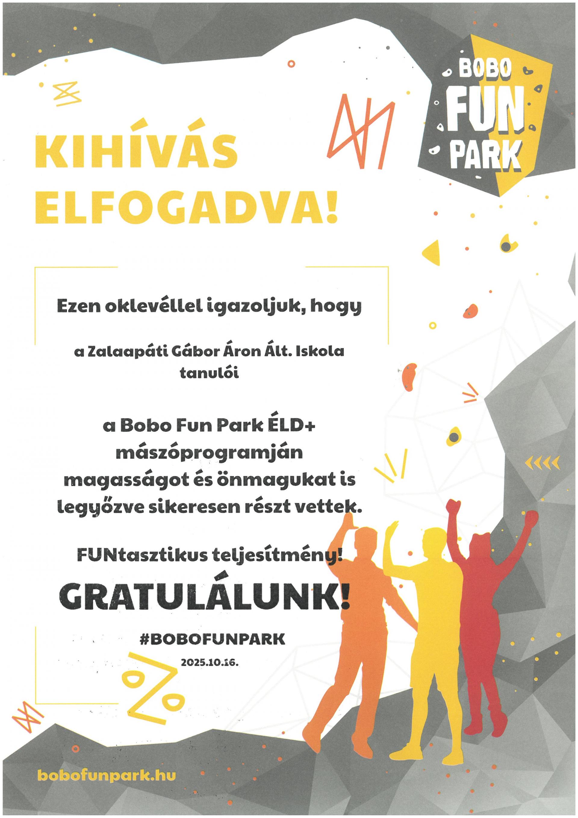 Hírek ÉLD+ - Bobo Fun Park mászóprogram 2026. január 21., szerda @ 14:18 Lelkes csapattal vettünk részt az Aktív Magyarország ÉLD+ programján a Bobo Fun Parkban! Köszönjük az élményt! Kapcsolódó galéria ÉLD+ - Bobo Fun Park mászóprogram Megosztás vissza a hírek & eseményekhez