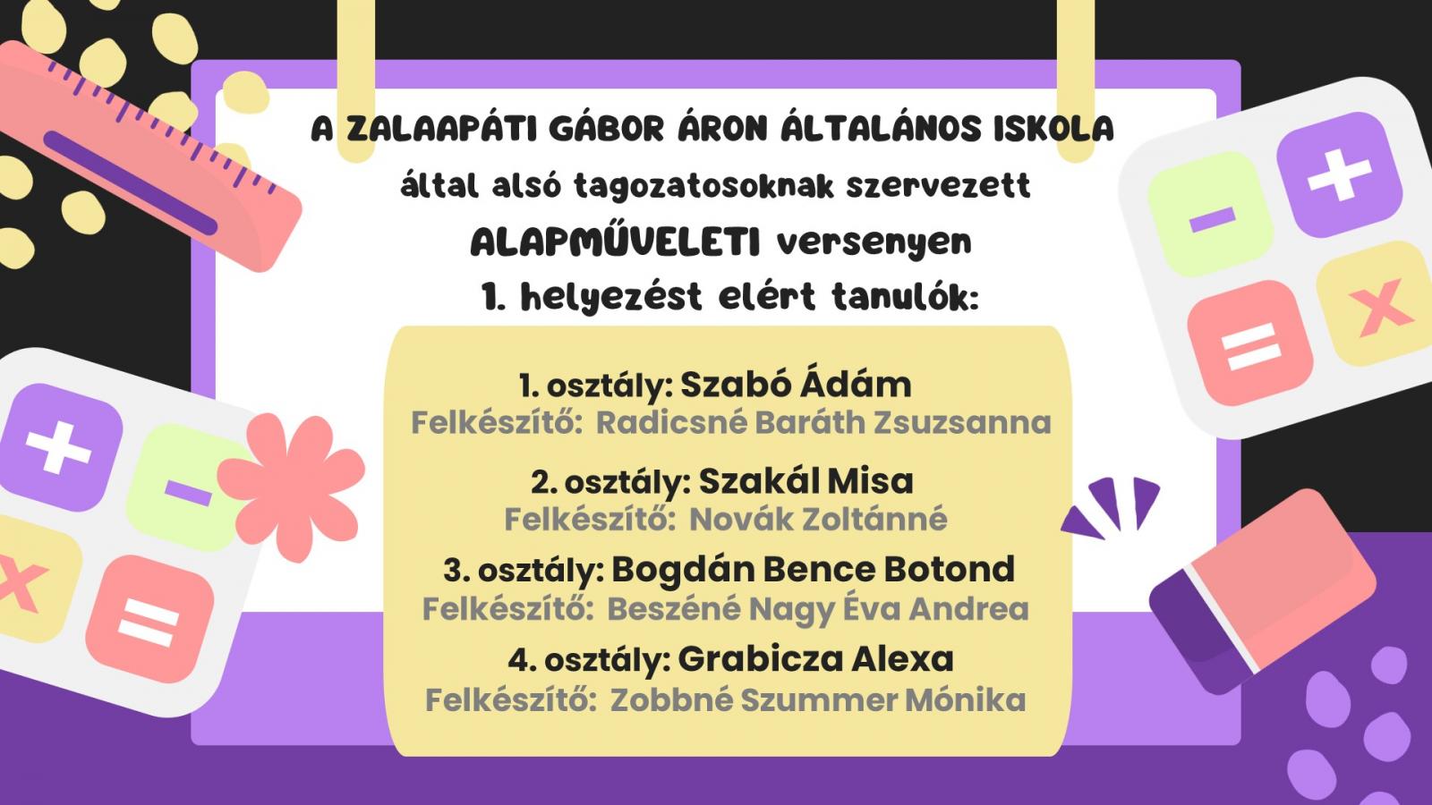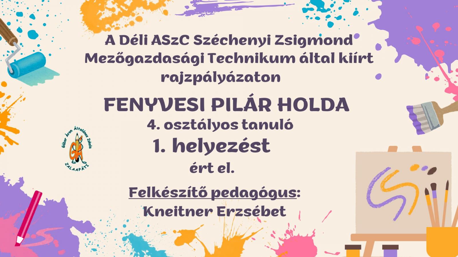 Eredmények Versenyeredmények Alapműveleti verseny (2025/2026) Rajzpályázat - Széchenyi Zsigmond Technikum (2025/2026) Diákolimpia - mezei futóverseny(2025/2026) Móra napok versenyeredményei (2025/2026) Gábor Áron napi versenyek eredményei (2025/2026) Természetismereti levelezős verseny Természetismereti csapatverseny Rajzpályázat Safer Internet Day - Plakátkészítő verseny (2025/2026) A Nemzetközi Gyermekmentő Szolgálat a Biztonságos internet napja alkalmából kiírt, mesterséges intelligencia tévedései témájú plakátkészítő pályázatának eredményei. First Lego League - UNEARTHED zalaegerszegi selejtező (2025/2026) Január 28-án került sor a First Lego League zalaegerszegi regionális selejtezőjére. XXIII. Regionális Erzsébet királyné olvasópályázat (2025/2026) GasztroTHÚRYsztika idegen nyelvi verseny (2025/2026) Egészségnevelési verseny (2025/2026) Szépkiejtési, vers- és prózamondó verseny - Illyés napok (2025/2026) Rajzpályázat - Illyés napok (2025/2026) CodeWeek - Robotszépségverseny (2025/2026) Rajzpályázat - Sármellék (2025/2026) Német nyelvi országismereti verseny (2025/2026) "Szép Magyar Beszédért" Alapítvány vers- és prózamondó verseny (2025/2026) Diákolimpia - Floorball (2025/2026) Diákolimpia - mezei futóverseny (2025/2026) RobotikAI novellapályázat (2024/2025) Fekete István online játék (2024/2025)