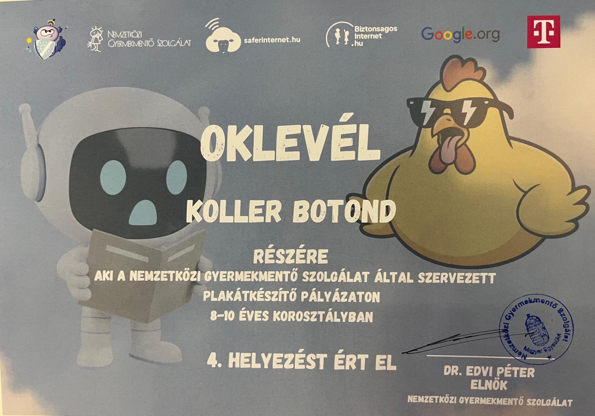 Országos díjazott: Bek Rebeka (4. hely), Koller Botond (4. hely), Szabó Dávid (5. hely)